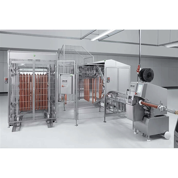 Die automatischen Aufhängelinie FCHL LS arbeitet zuverlässig kontinuierlich in direkter Verbindung mit dem Doppelclipautomaten FCA 160 und dem robotergestützten Rauchwagen-Ladesystem ASL-R (optional). Dabei werden Schlaufenprodukte im Kaliberbereich von 38 bis 100 mm hocheffizient auf dem Rauchstab positioniert, kontinuierlich, exakt und in hoher Ausbringungsrate. Die präzise Positionierung ermöglicht eine höhere Ladedichte.