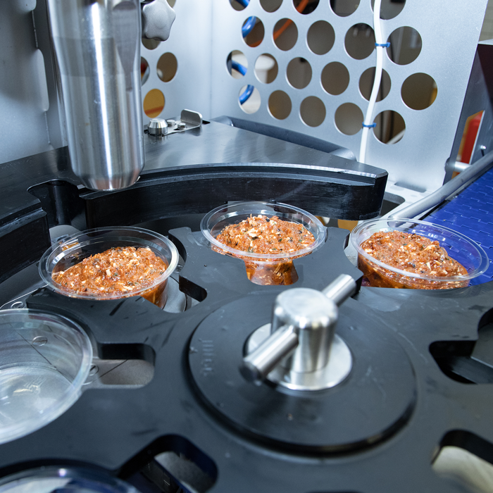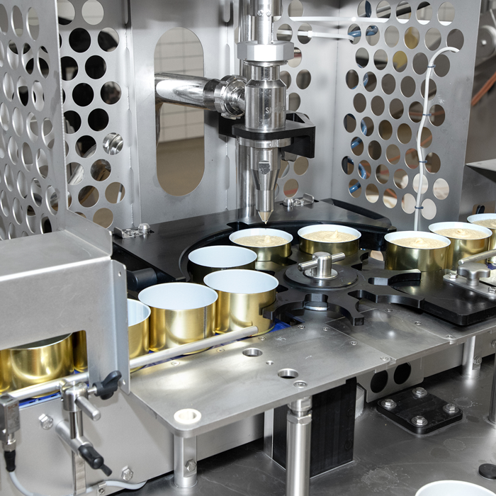 Effizient gehaltene vollautomatische Abfüllanlage zur Abfüllung pastöser und flüssiger Produkte