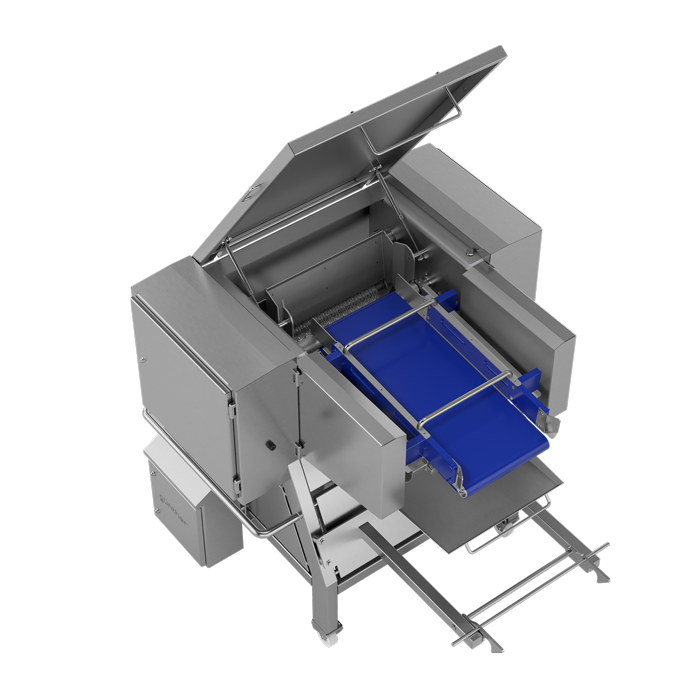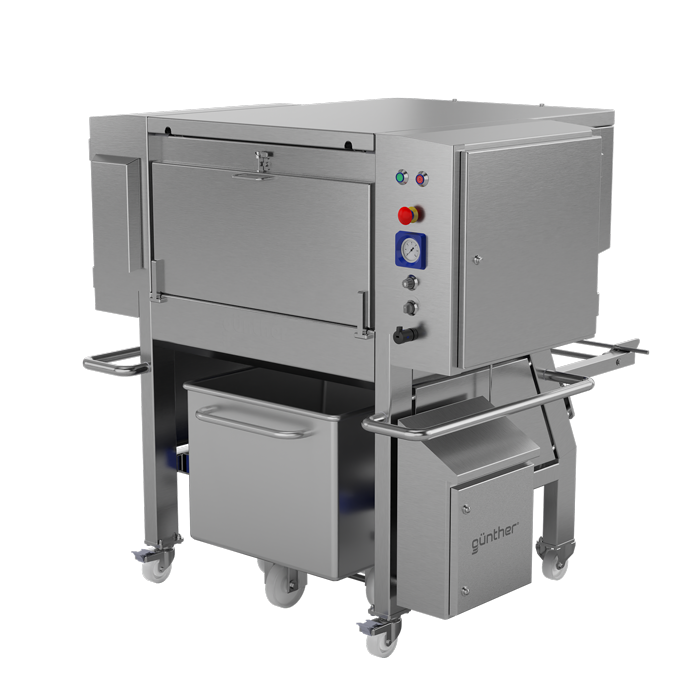 Rotierende Messer garantieren durchschlagende Produktveredlung im Durchlaufverfahren. Der Günther Walzensteaker ist bestens für hohe Produktkapazitäten geeignet. Durch die verschiedenen Bandbreiten ist eine leichte Linienintegration möglich.