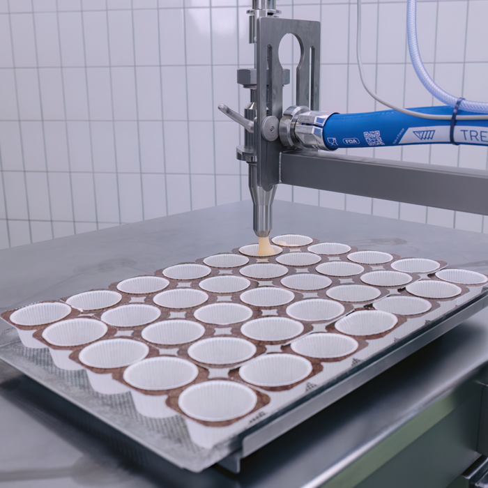 Der Fülltisch FT722 automatisiert Arbeitsschritte in der Bäckerei oder auch in Grossküchen und Catering-Betrieben. Teige werden exakt auf Bleche dressiert / portioniert oder Massen automatisch in Backformen und Gläser gefüllt.