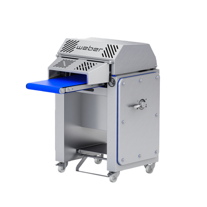 Im offenen Betrieb ist die AFS 460 besonders geeignet für das manuelle Entschwarten aller runden, sich selbst drehenden Teilstücke wie Schinken, Schulter und Eisbein. Dies ermöglicht eine flexible Anwendung je nach Bedarf. Ein weiterer Vorteil ist der innovative Klappmechanismus des Zuführbands, der eine feste Montage an der Maschine ermöglicht, ohne dass ein Ausbau erforderlich ist. Dies erleichtert die Handhabung für den Anwender.