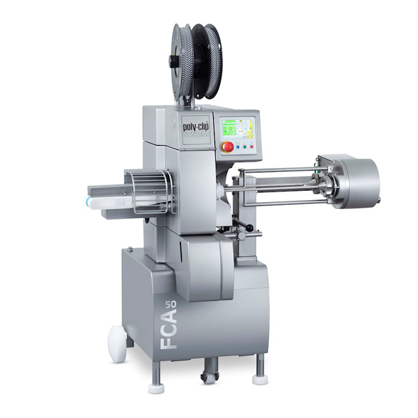 Höchstgeschwindigkeit mit bis zu 300 Takten (350 Takte mit IFC) im Durchlauf zeichnet den FCA 50 aus. Er verschliesst Cellulose- und Kunststoffdärme, produkt- und darmabhängig, bis Kaliber 50 mm mit dem R-ID Clip.