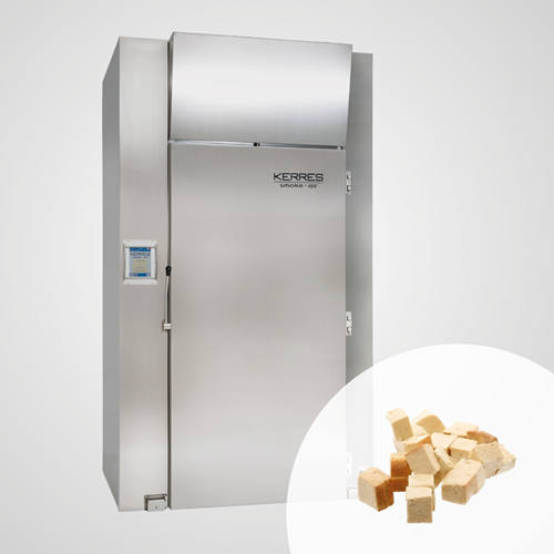 KERRES Universalanlagen ermöglichen das Trocknen, Räuchern, Kochen, Backen und Garen von verschiedensten Lebensmitteln. Geräucherter Tofu, Kochen und Räuchern von veganen Hot-Dogs oder Kochen von Bohnen und Kichererbsen, sind nur einige Anwendungen die in unseren KERRES Anlagen hergestellt werden können.